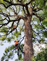 1度に伐採ができない複雑な空間では、条件に適した方法によって枝や幹を順番に切断し、徹底した管理体制のもと安全かつ効率的に行う樹護士アーボリストの仕事です。