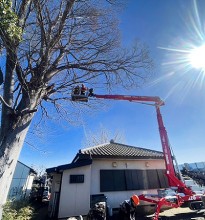- 2025年6月 埼玉県川越市 A様邸<div>高生垣剪定の高所作業は足場が不安定なため、高所作業車(エアリアルリフト)で安全・確実に作業を行います。</div>